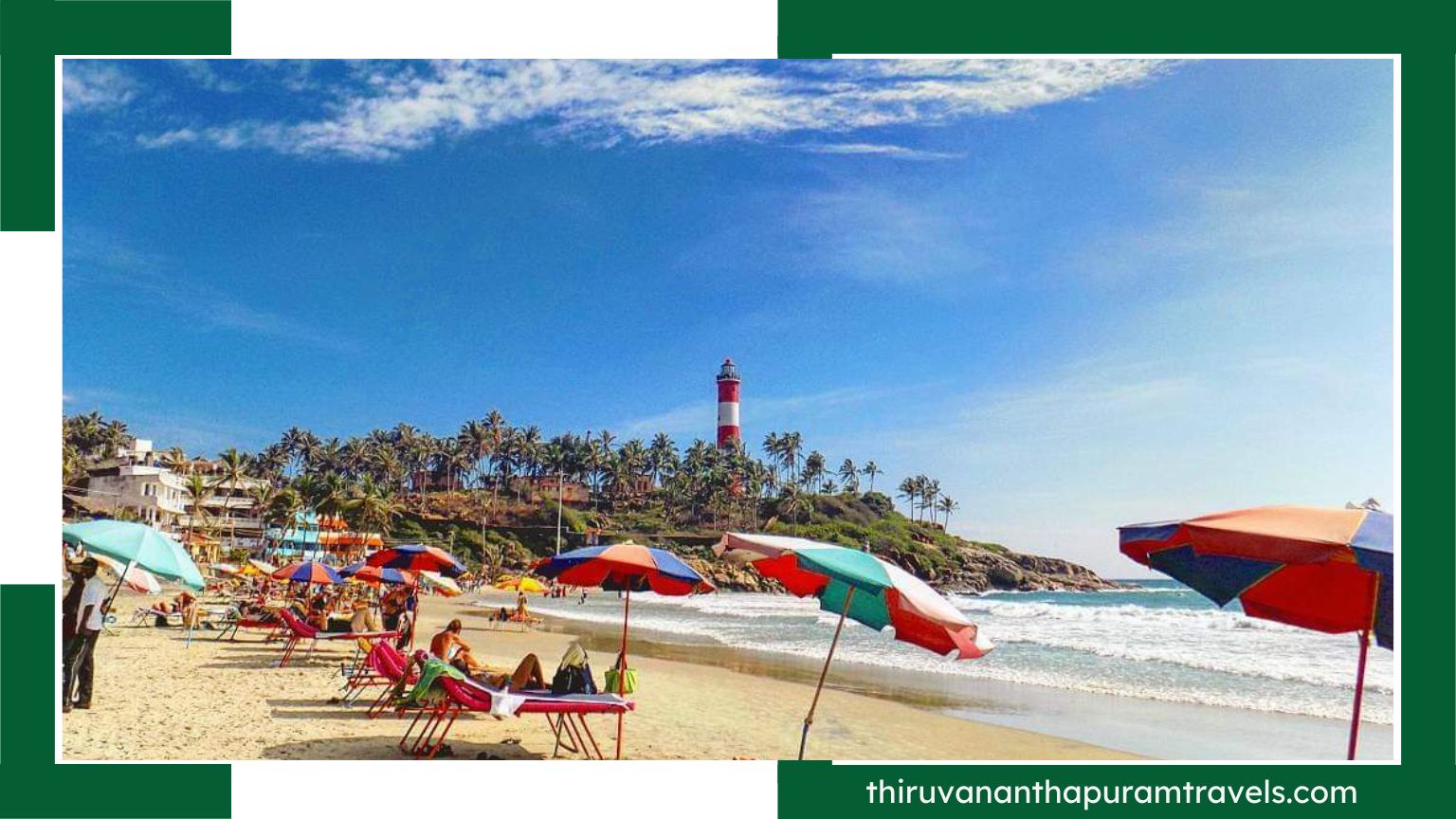 Hawa Beach is a top tourist destination in Kerala, as well as in Kovalam. The beach is famed as a natural wonder shaped like a boundary between the sea and the other parts of Kovalam. The wide stretch of sand glistens when sun rays fall on them from the clear blue sky and creates a contrast between the blue water and green-dotted palm trees.